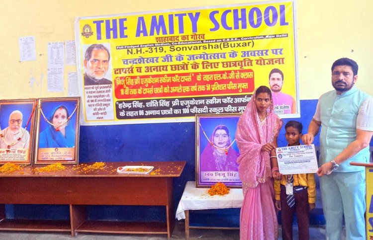 सोनवर्षा के द एमिटी स्कूल में पूर्व प्रधानमंत्री चंद्रशेखर जी की जयंती के अवसर पर सराहनीय पहल करते हुए 12 मेधावी टॉपर छात्रों एवं 6 अनाथ छात्रों की स्कूल फीस माफ करने की घोषणा की है। यह निर्णय शिक्षा के क्षेत्र में प्रेरणादायक कदम माना जा रहा है। विद्यालय प्रबंधन द्वारा जारी प्रेस विज्ञप्ति के अनुसार सत्र 2025-26 में एलकेजी से कक्षा 10वीं तक के 12 टॉपर छात्रों को सत्र 2026-27 के लिए 50 प्रतिशत से लेकर 100 प्रतिशत तक फीस में छूट दी गई है। वहीं चयनित 6 अनाथ छात्रों को पूरी तरह निशुल्क शिक्षा देने का निर्णय लिया गया है।