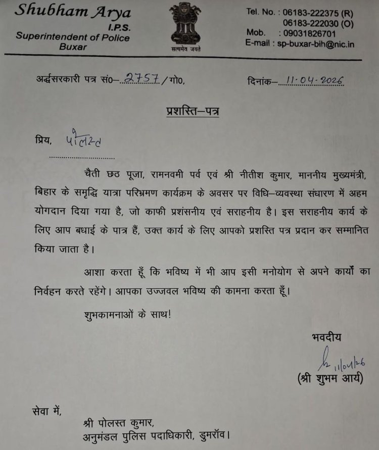 डुमरांव अनुमंडल में बीते कुछ समय से कानून-व्यवस्था की स्थिति को लेकर जो सकारात्मक बदलाव देखने को मिला है, उसने पुलिस कार्यशैली की एक नई मिसाल पेश की है। इसी प्रभावी और संतुलित पुलिसिंग के कारण एसडीपीओ पोलस्त कुमार को विभागीय स्तर पर लगातार सराहना मिल रही है। हाल ही में एसपी शुभम आर्य द्वारा उन्हें प्रशस्ति पत्र देकर सम्मानित किया गया, जिसने उनके कार्यों को औपचारिक मान्यता दी।
